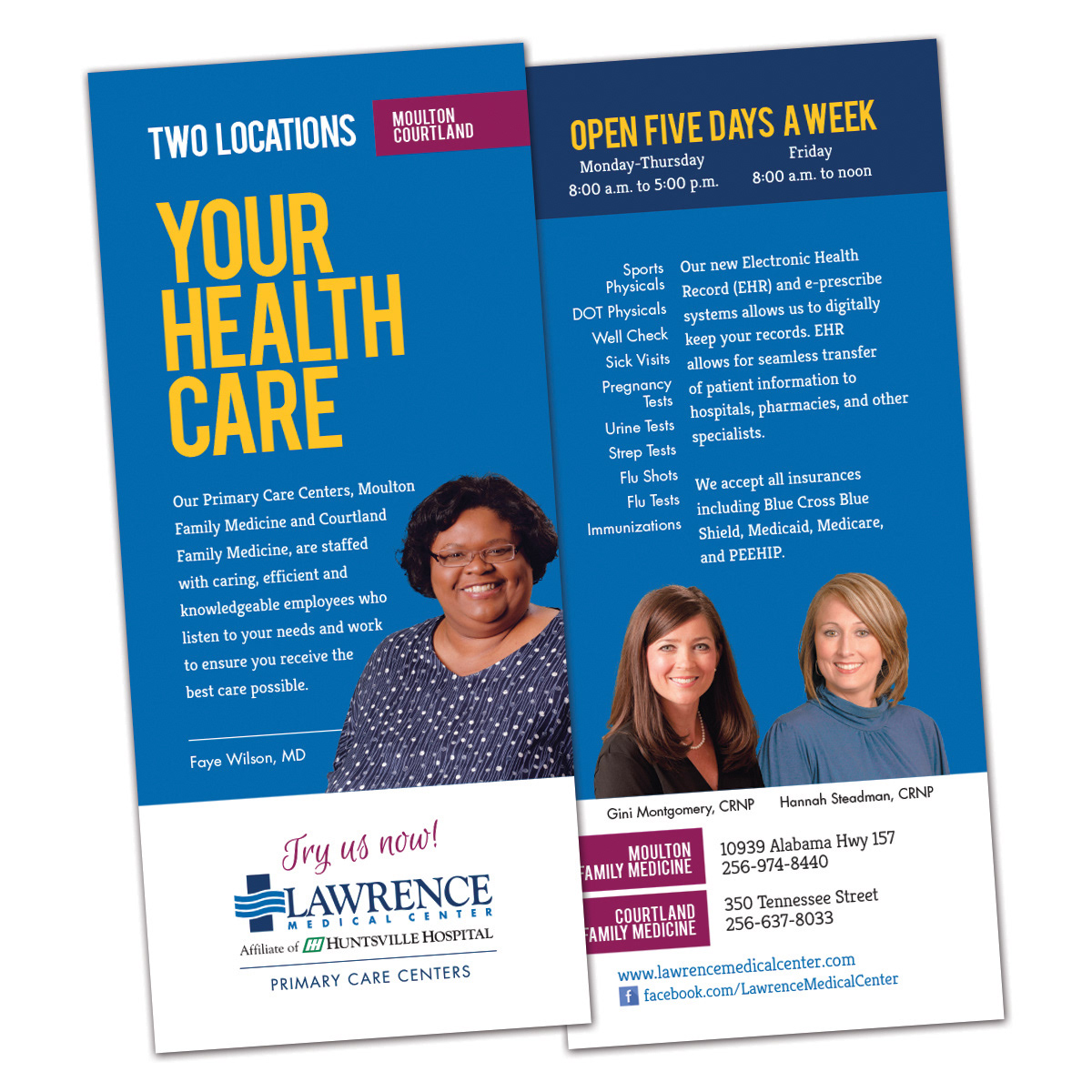 One of a series of rack cards promoting clinics in the Lawrence Medical Center system.